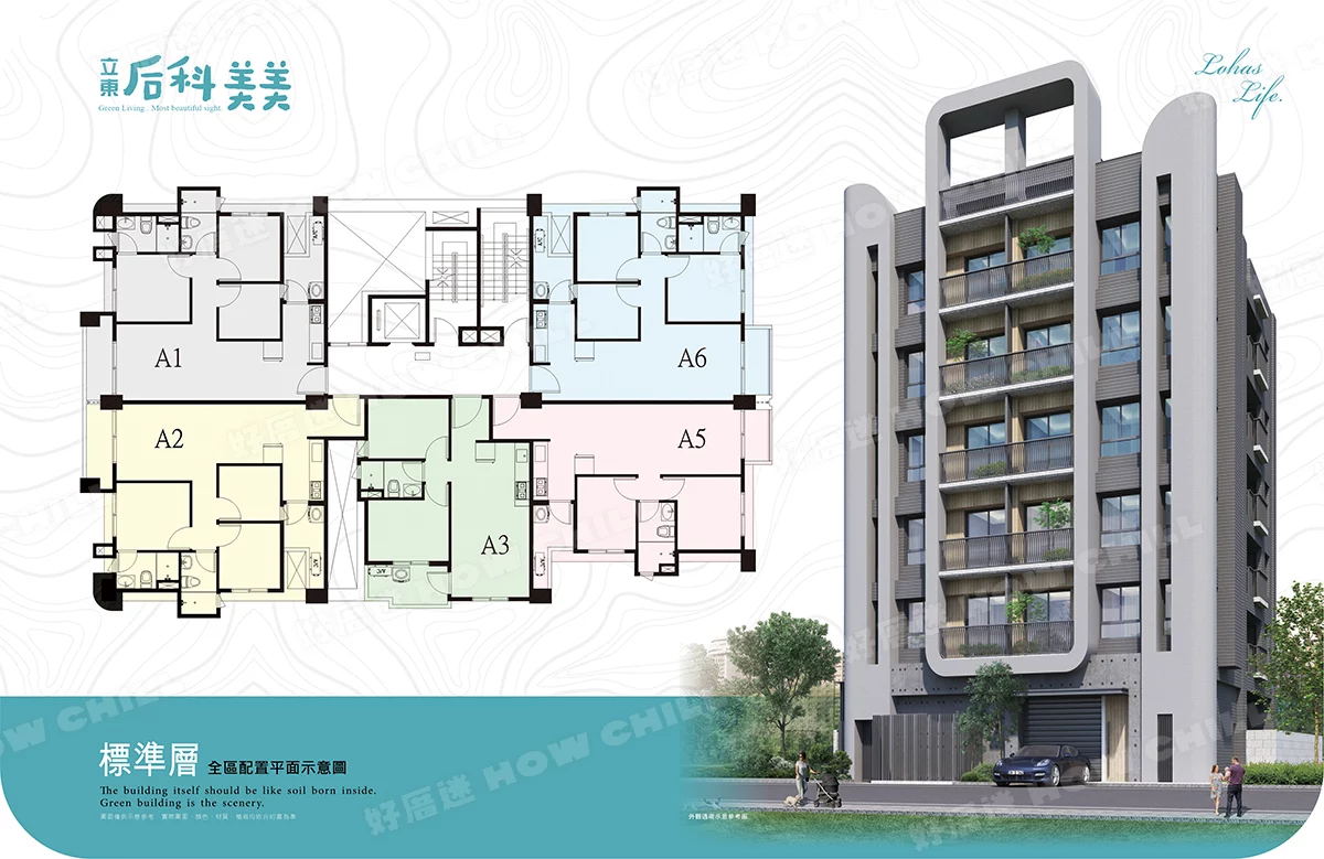 | 棟戶規劃 | 1幢,1棟,40戶住家,1戶店面 |