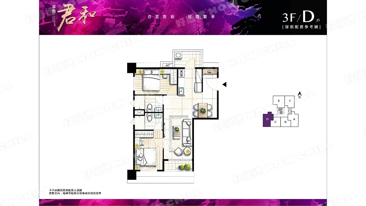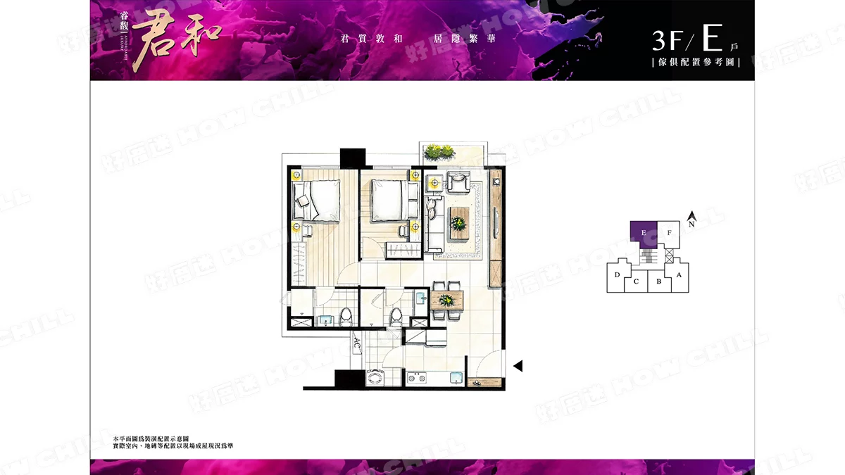 | 建材說明 | 廚具:BEST,衛浴:TOTO,其他:維夫拉克電子鎖、太格木地板、鑄鋁鋼木門、三菱電梯、歐蘭特電動曬衣架 |