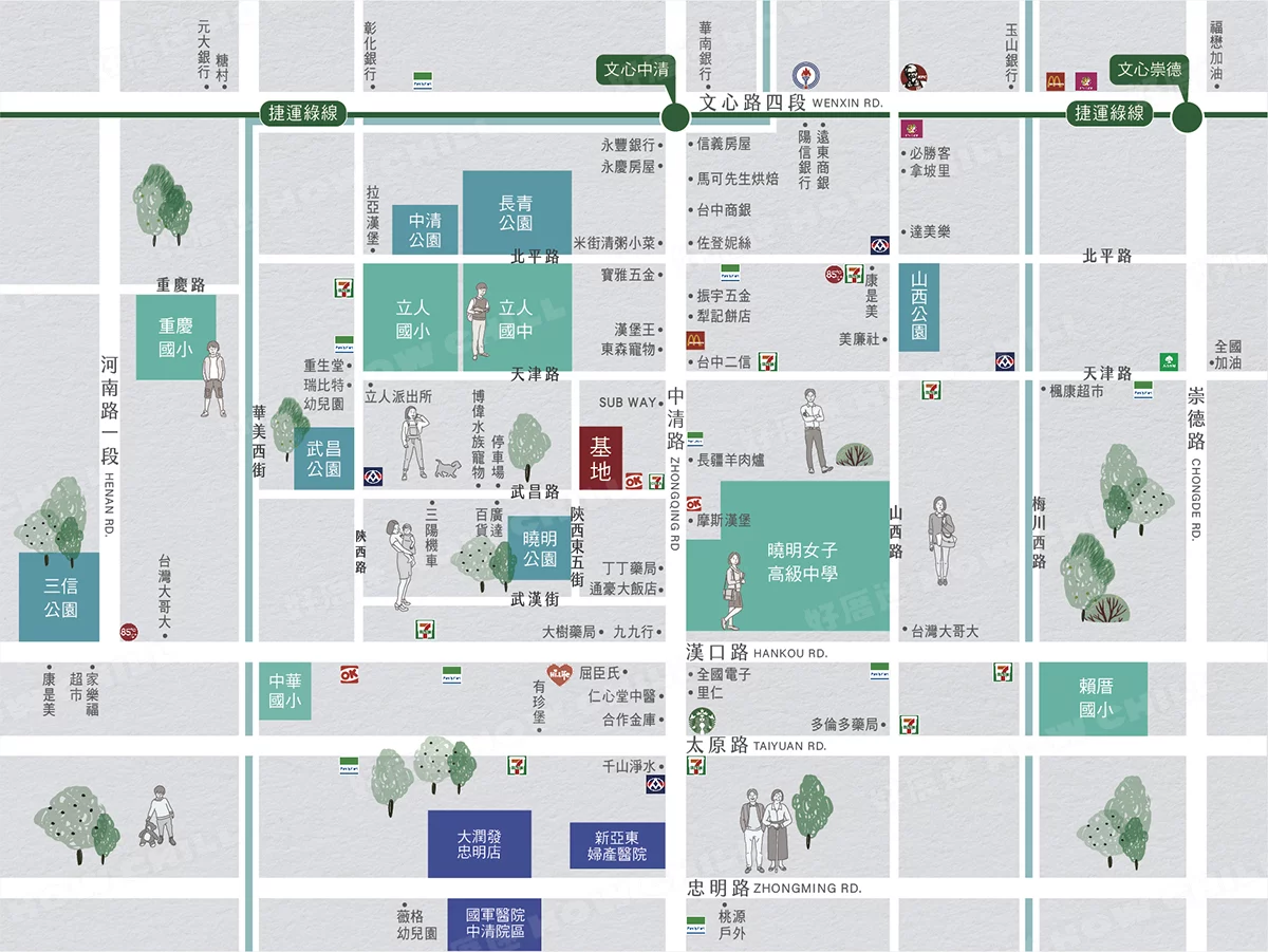 周邊環境,車程約4分鐘即可抵達學區南屯國小、萬和國中,距高鐵新市鎮生態公園約3分鐘車程,車程約4分鐘可至臺中市南屯國民運動中心。