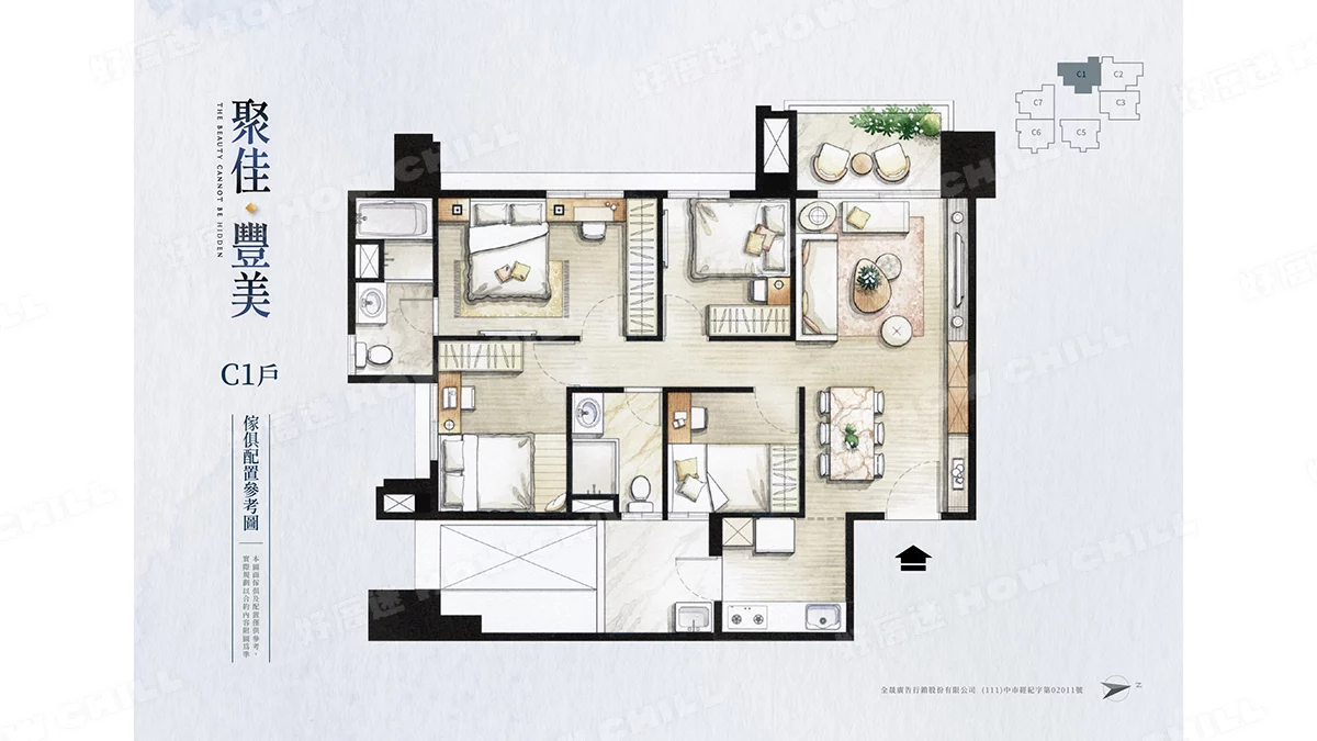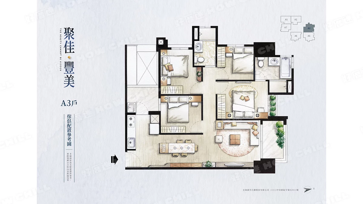 廚具:BEST,衛浴:TOTO,其他:維夫拉克電子鎖、太格木地板、鑄鋁鋼木門、三菱電梯、歐蘭特電動曬衣架