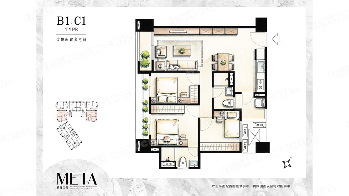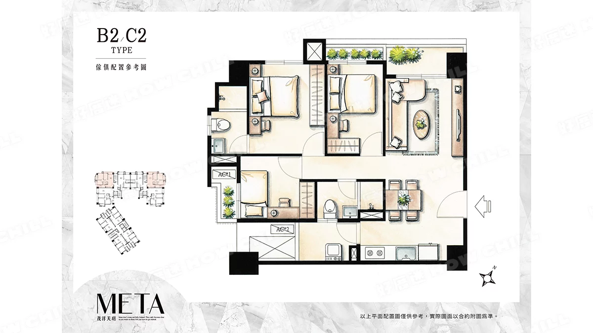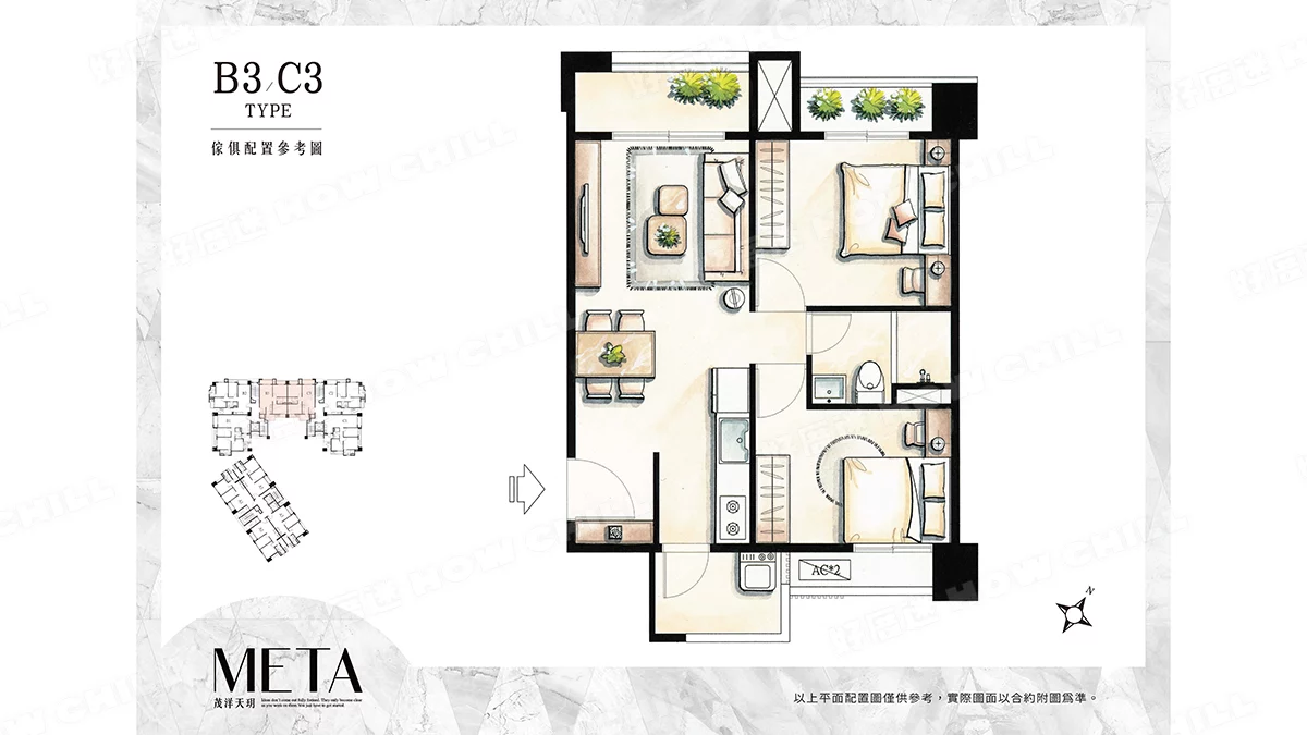 | 住家格局 | 二房 (23~26坪)、三房 (33~35坪) |
