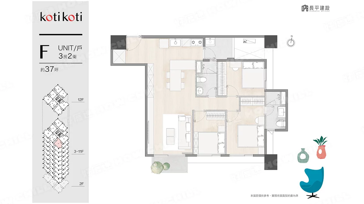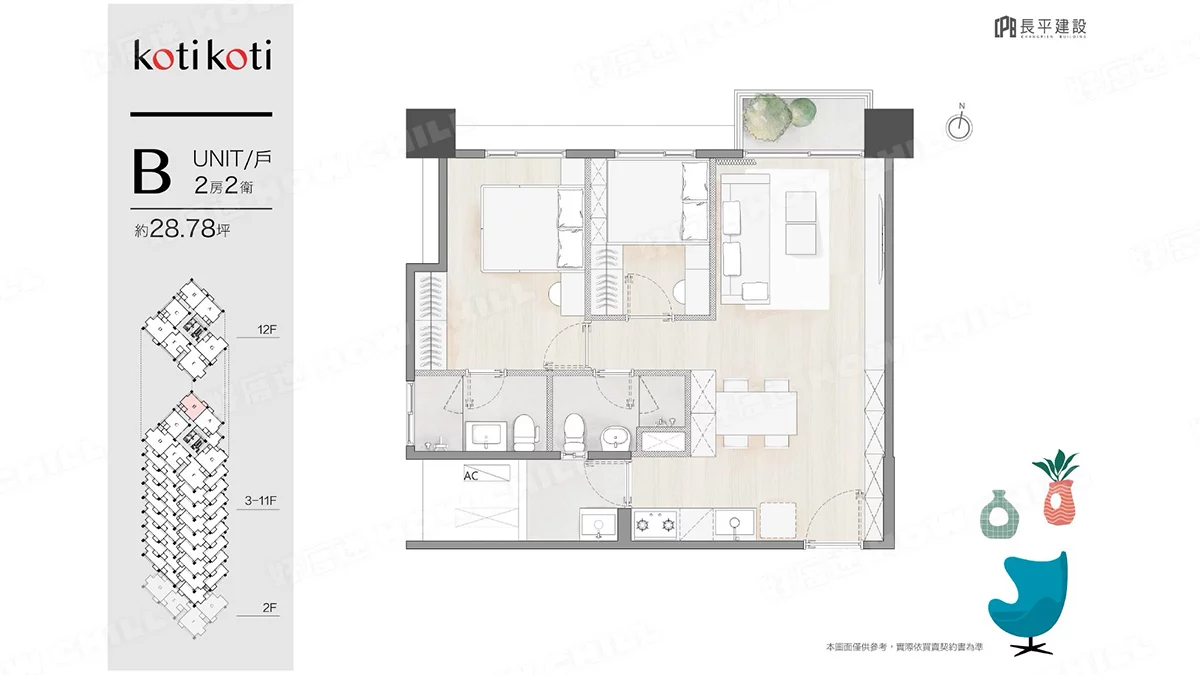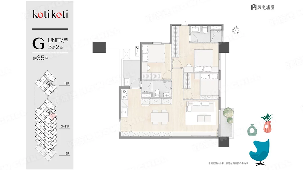 二房 (26.9~28.78坪)、二+1房 (30.8坪)、三房 (35~37坪)