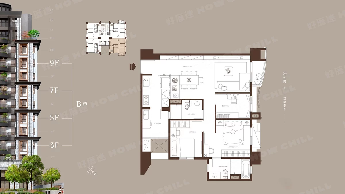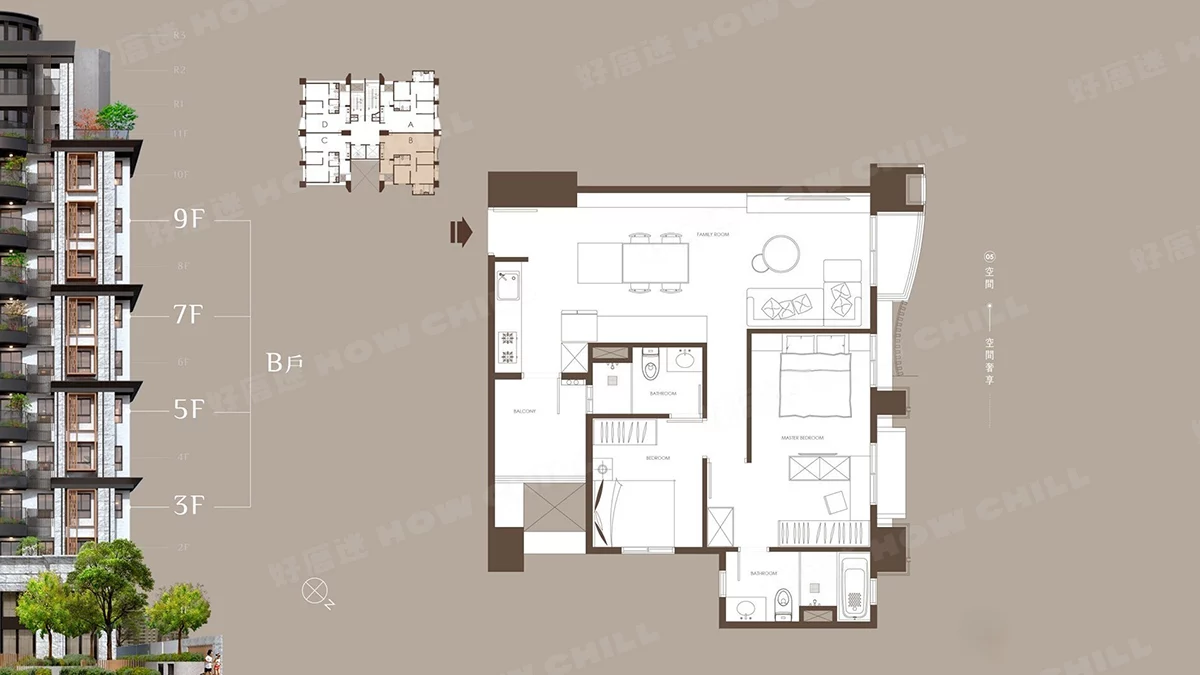 | 住家格局 | 二房 (26坪)、三房 (35坪) |